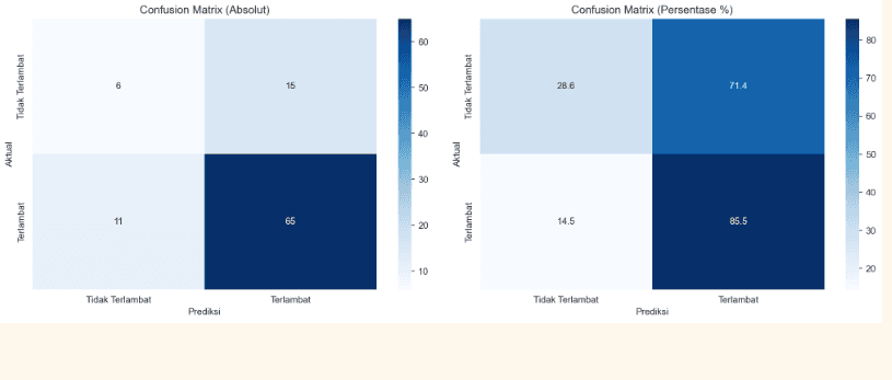 Nilai_Kontrak_per_Hari(Contract value per day): the contract value divided by the planned duration. This proxies project intensity. A high-value short-duration project is structurally riskier than a same-value project with a longer planned timeline.Log_Nilai_Kontrak(Log contract value): a log transform of contract value to compress the long right tail. Contract values in the dataset spanned three orders of magnitude, which would have let the largest projects dominate split-finding in the trees.